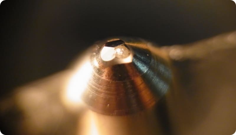 我想在金屬上打一個 0.1 毫米或更小的干凈孔。
