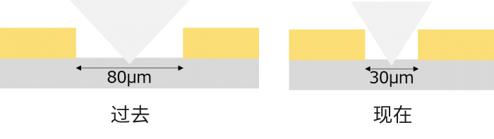 雖然InP半導(dǎo)體具備高功能?高性能的優(yōu)點(diǎn),但是也存在成本昂貴的問題。因此半導(dǎo)體廠家為減少成本,會提高1枚InP晶圓上的芯片集成度。晶圓的劃痕寬度為100μm以下,晶圓的小芯片尺寸為170μm×170μm。劃痕寬度越小,晶圓的有效使用率就越高,市場需求是把劃痕寬度小的晶圓高精度芯片化。
