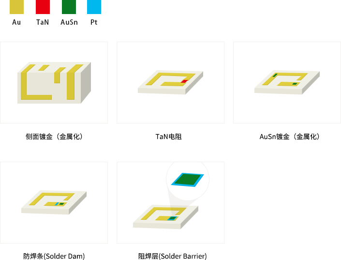 | 電阻 | 電阻鍍層 | – | 氮化鉭 (TaN) | |